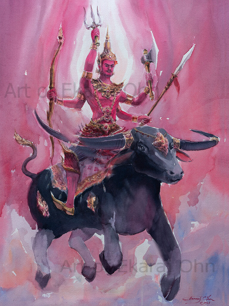 Mars, or Mangala, is the deity of the planet Mars, embodying the power of fire, courage, combat, and unwavering determination.He is said to have been born from the sweat of Shiva, while some traditions describe him as the son of Bhumi, the Earth Goddess, and Vishnu.As one of the Navagraha, he exerts influence over human action, strength, decision-making, and perseverance.