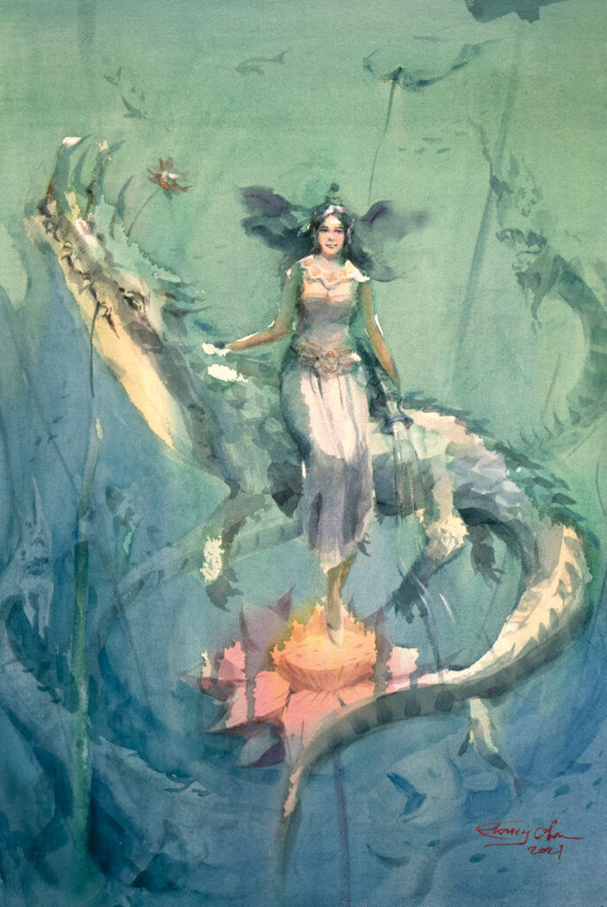Ganga Devi (พระแม่คงคา) is the goddess of the Sacred River who cleanses the impurities of the world with compassion and purity. She is the daughter of Himavan (Thao Himawat), the personification of the Himalayas, and the sister of Parvati.