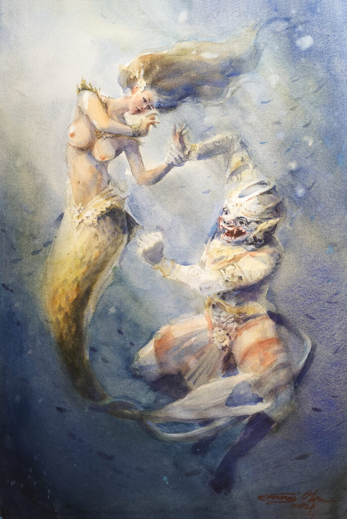 The confrontation between Suvannamaccha and Hanuman led her to fall in love. This deep connection caused her to cease her resistance to Hanuman’s efforts in building the stone bridge.